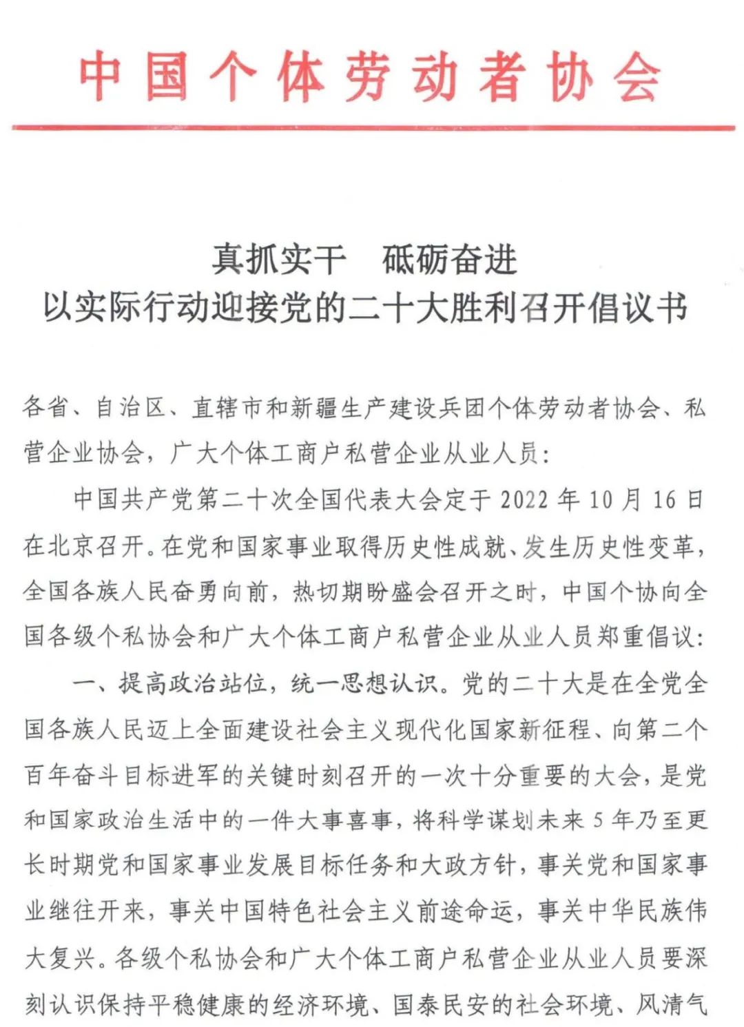 真抓实干 砥砺奋进 以实际行动迎接党的二十大胜利召开倡议书