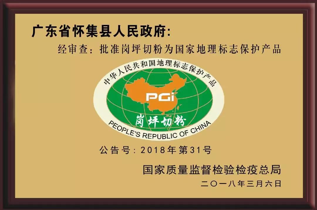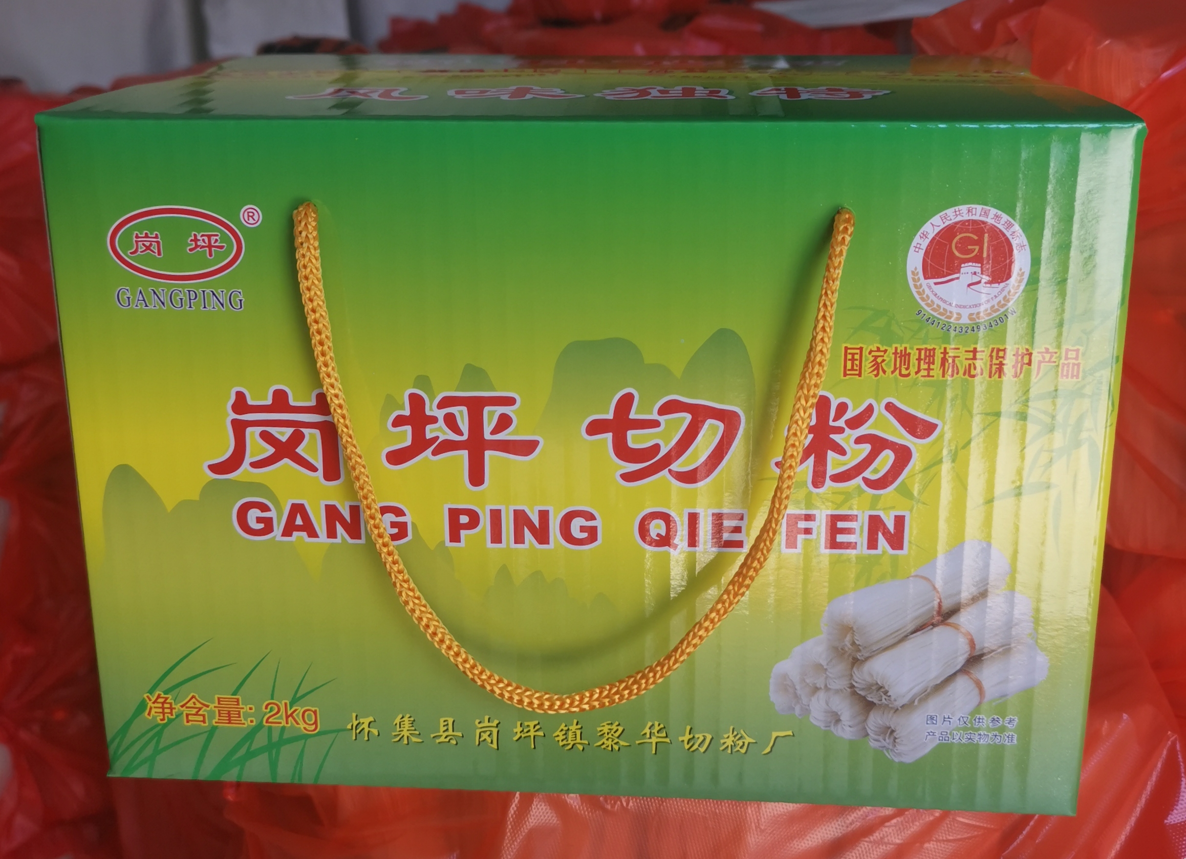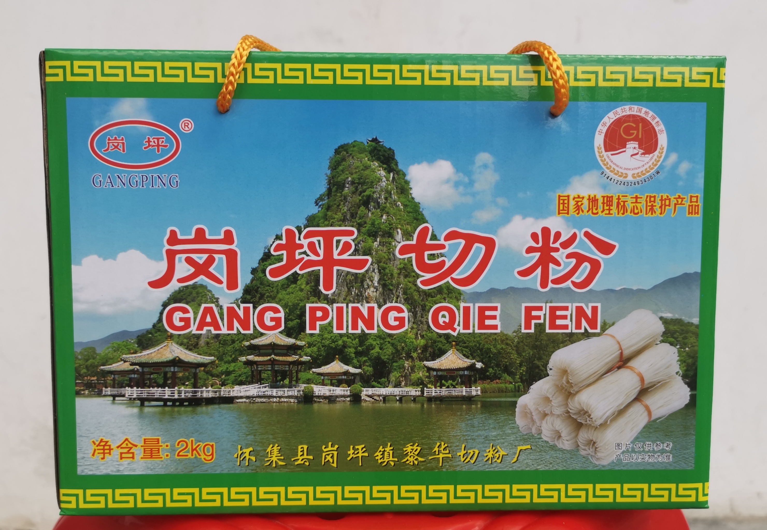 岗坪切粉是广东省肇庆市怀集县知名特产,始传于一千多年的宋代,其独特的制作工艺和风味扬名古今,吸引着四方食客,是2011年怀集县十大名优农产品,2018年获得国家地理标志产品保护的特色产品。本产品无添加任何添加剂,是绿色健康食品,具有软滑薄韧,米味浓郁,风味独特,美味爽口的特色。