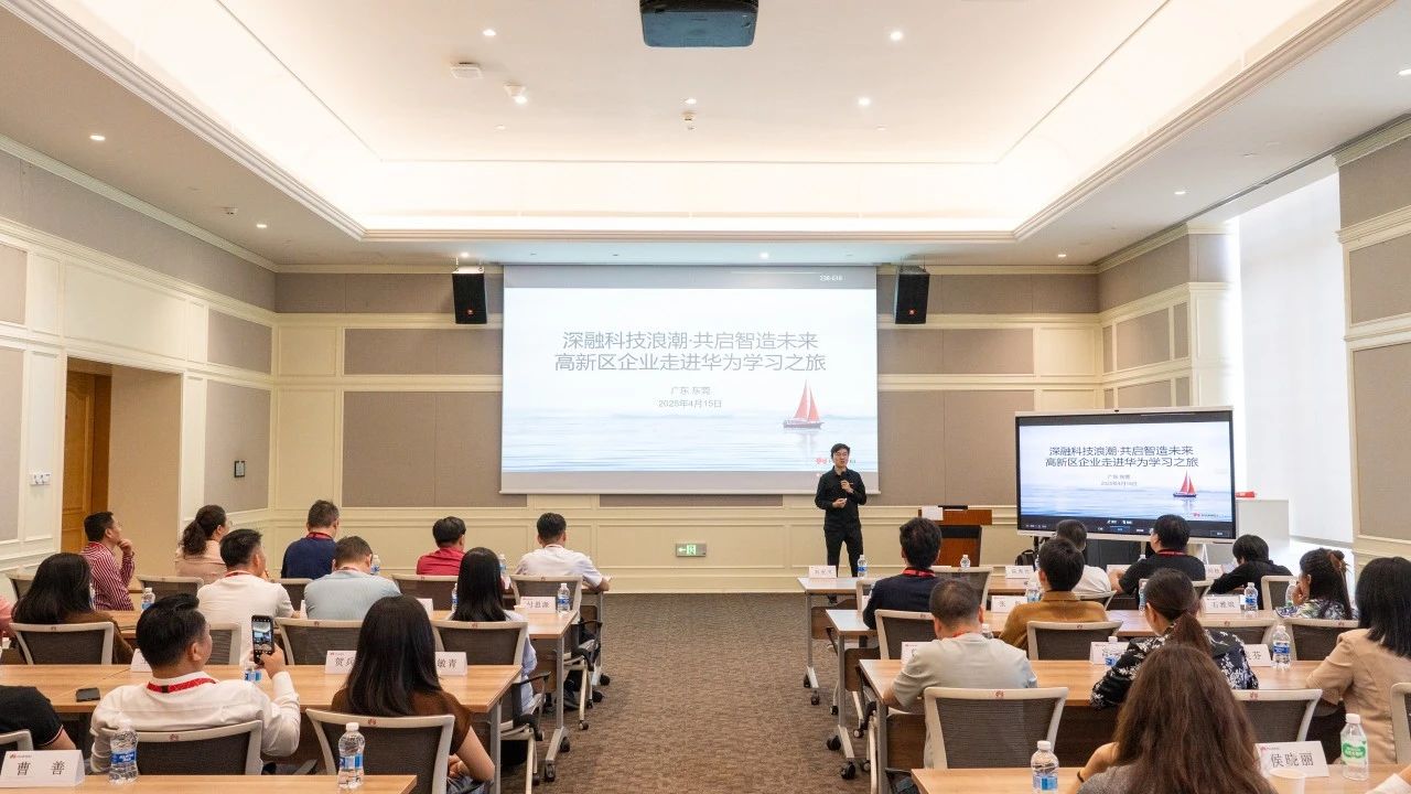 为深化企业数字化转型认知,赋能区域产业升级,助推会员企业把握智能制造发展机遇,2025 年 4 月 15 ,肇庆高新区个私协会联同肇庆高新区工商联、区新阶联、区海归协会组织会员企业代表赴华为松山湖欧洲小镇开展“深融科技浪潮·共启智造未来” 主题活动,肇庆高新区工商联副主席、秘书长黄子培,区个私协会党支部书记、会长官富财、副会长赖剑臣、彭海周、秘书长黄绍胜、理事曾虾、黄敏青及高新区会员企业代表等共30余人参加。